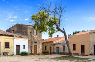 Una piccola realtà fuori dal tempo, questo sembra a primo impatto il villaggio di San Salvatore di Sinis, distante pochi chilometri dal capoluogo di provincia, Oristano. Schiere di abitazioni in arenaria o mattoni di terra cruda, basse, una molto simile all'altra, dai tetti spioventi e le facciate scarne, quasi tutte bianche e disposte in modo tale da affacciarsi su una piazza comune brulla e selvaggia.